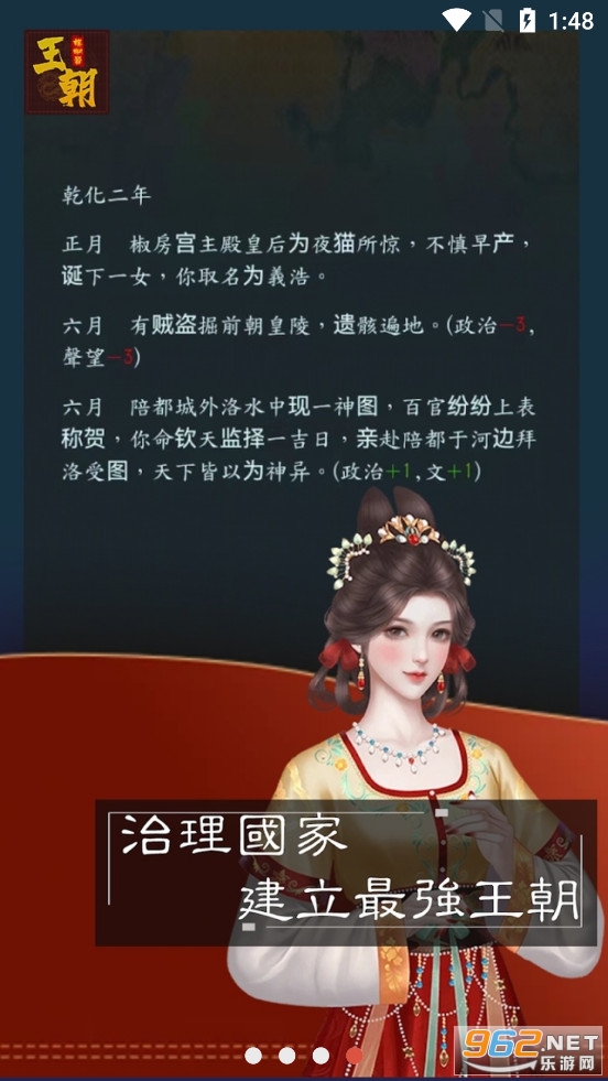 《王朝模拟器》是一款让你体验帝皇生涯的模拟游戏。在这里,你将扮演一代帝皇,管理自己的朝政,发展经济,训练军队,最终一统天下。玩家需要管理国家的各个方面,包括财政、军事、科技、文化和外交等。你需要制定政策、处理内政和外交事务,确保国家的繁荣和稳定。同时,你还需要发展经济、训练军队,以应对外部威胁和挑战。