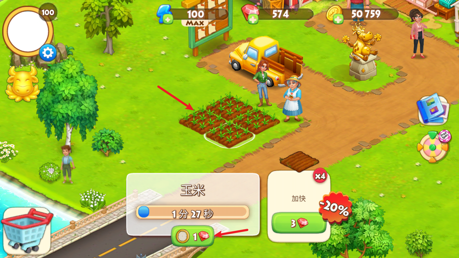 2、种植下去后,作物需要一些时间才能成熟,也可以消耗钻石直接成熟。