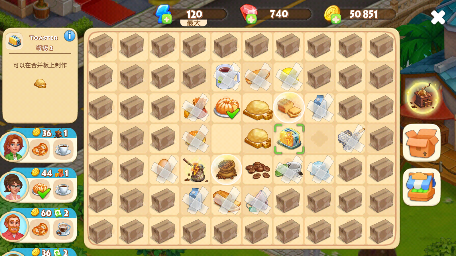 8、还可以通过简单的二合一玩法完成订单,获得金币奖励。