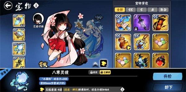 3、同时大家也可以携带猫太钱包这类型的宝物,它们提供的忍币加成的状态,也可以帮助你在竞技场中获得更多的忍币呢