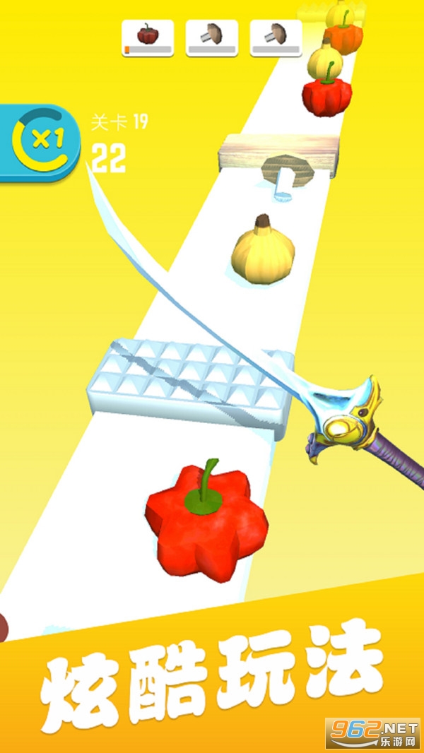 一款休闲解压小游戏,玩家可以利用手中的不同道具,以最快的速度和最少的失误完成切水果的任务。注意哦,道具碰触水晶障碍游戏立即结束,流畅的切水果体验,酷炫的动画效果,多种多样的切水果道具,任你畅玩。