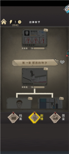 3. 主界面包含档案”剧情”图鉴”三大模块,分别记录角色状态、推进主线及收集剧情碎片。