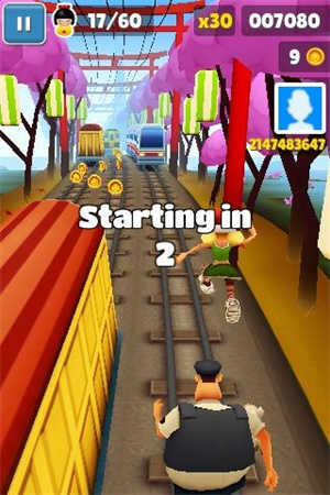 8-9: 单次跑步过程中撞到3次火车,用磁铁收集40个金币,10秒内被警察抓到。