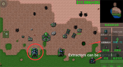 我们现在只有少的可怜的资金,怎么办呢?当然是找一个黑漆漆的大坑,然后让建造车在上面建‘’资金提取器”,钱就开始源源而来了,可升级,建议初期就升。