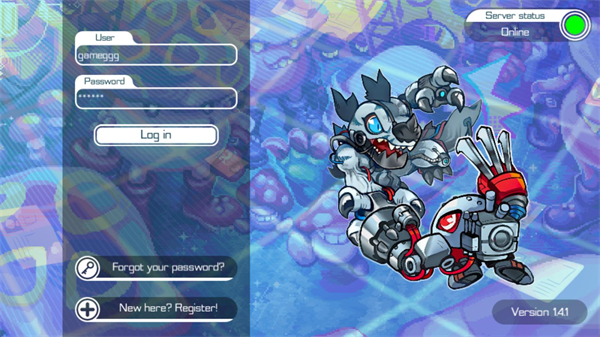 2、主界面功能:登录后进入核心操作界面,当前培养的数码兽将显示在中央区域。
