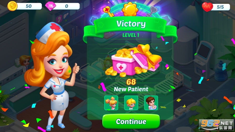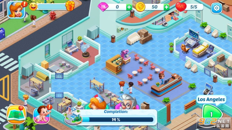 玩家们需要不断的经营医院累计金币,照顾病患才能够解锁新的设备和家居。