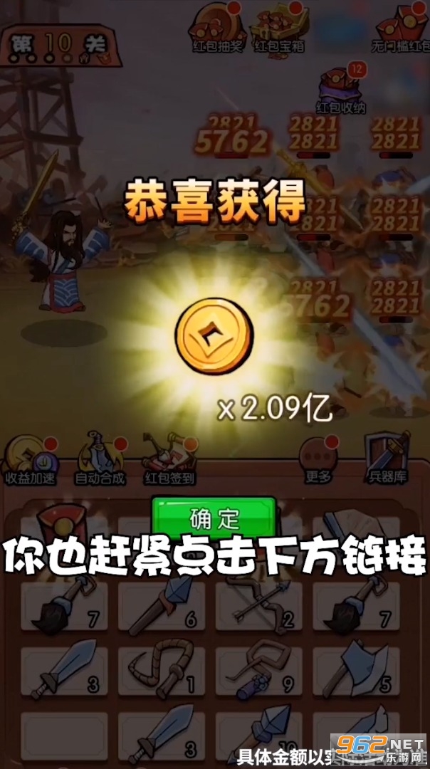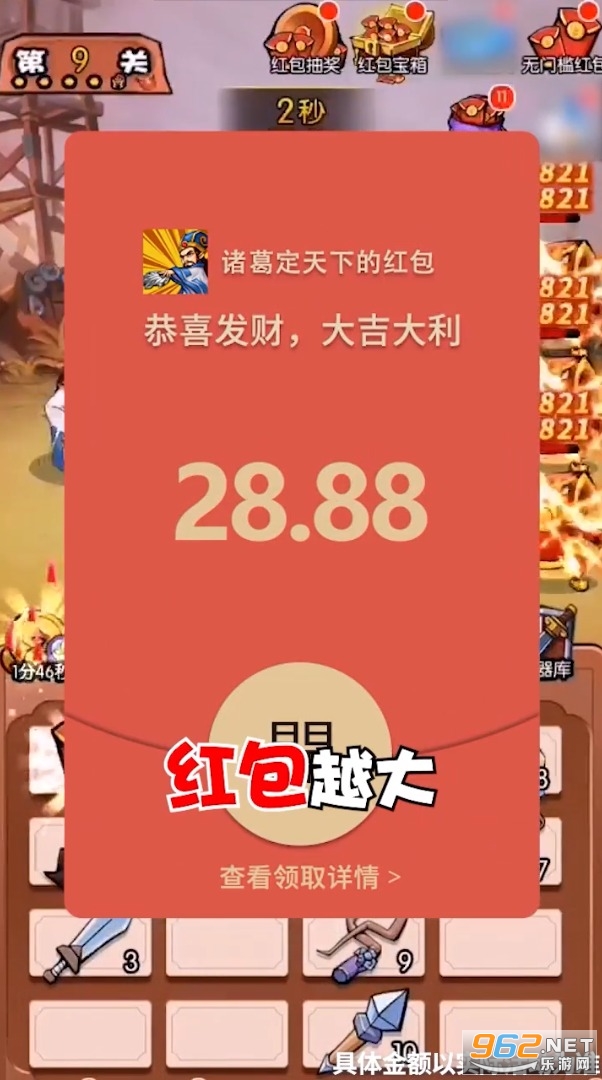 收集更多的武将招募更多的士兵,在战斗的时候合理的搭配你的阵容,每天都会有超多任务等你去完成,完成任务和战场取胜一样都能获得红包,想玩这款全新塔防策略游戏的话就赶快点击下载吧。