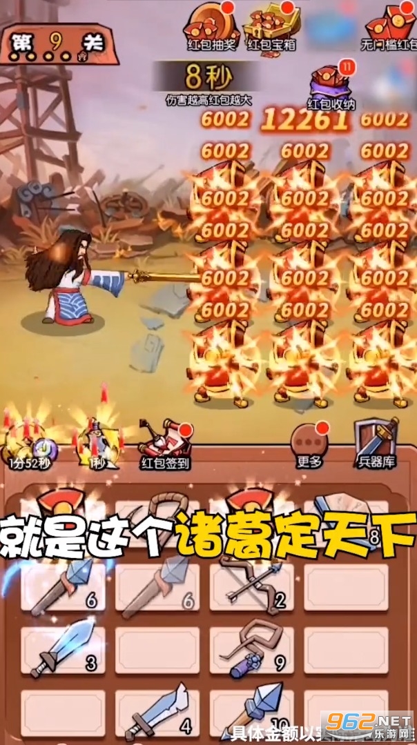 《诸葛定天下》是一款三国题材的塔防策略游戏,这也是一款加入了红包福利的塔防游戏,并且还有放置合成玩法,玩家可以通过不断合成得到更高阶的武器和更高等级的士兵,来大大提高自己整体的实力,每次成功应敌击溃敌军都能获得相对应的红包奖励哦。
