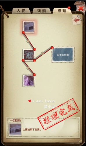 在张金祥房间及周边区域,共分布17处关键线索,涵盖地板、尸体、家具、墙壁等多个位置。从【地上的烟斗】、【碎玻璃】到【脖间血痕】、【飞剑】,再到【剧本】、【古画】与【簸箕里的碎纸屑】,每一件物品都可能指向作案动机、时间或手法。完成全部线索收集后,需进行7项关键推理验证,包括右手的伤痕”、奇怪的事”、并非巧合”等,逐步拼凑出案发全貌。