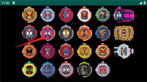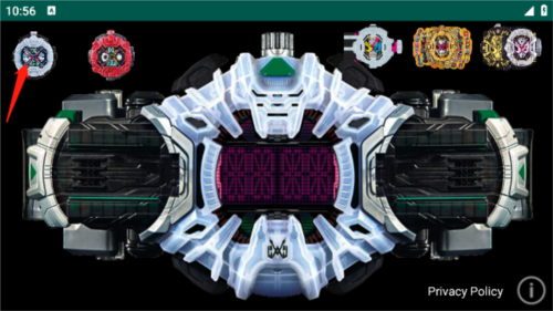 进入应用后,主界面中央即为可交互的时空驱动器”。上方左右两侧陈列着可选的驾驭表头。首先点击左上角的白色Zi-O驾驭表头,将其选中。