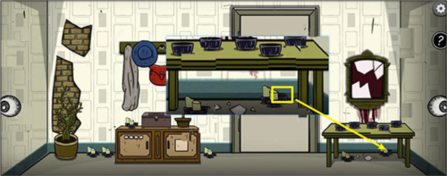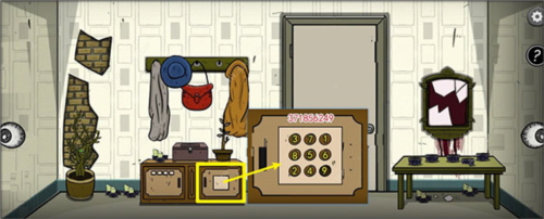 4、打开场景中间桌子下右边的柜子,需按顺序点击按钮(密码:371856249),获得【美工刀】。