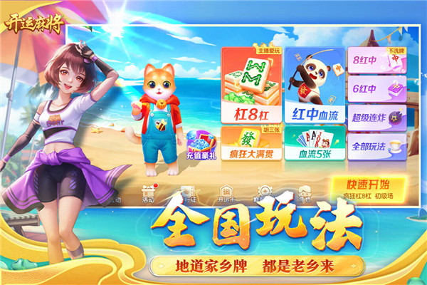 开运麻将疯狂金钩钓是一款集地域特色、竞技对抗与休闲娱乐于一体的多元化麻将对战平台。游戏不仅主打疯狂金钩钓”红中血流”三国杠八杠”等独创玩法,还融合了国标麻将、地方规则及斗地主等扑克玩法,满足不同玩家的竞技偏好。无论你是初入牌桌的新手,还是久经沙场的雀神,都能在这里一键匹配对手,即刻开局,沉浸于快节奏、高自由度的棋牌世界。