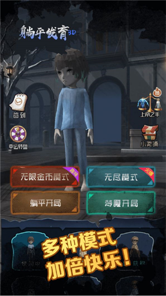 《躺平发育3D》不止于传统塔防。游戏提供多种模式自由切换:经典躺平开局”考验资源管理与防御节奏,梦魇模式”则大幅提升难度,挑战极限操作;而独特的上帝之手”功能更允许玩家自定义梦魇数量与玩家人数,打造专属对局。配合多样化的角色与武器系统,每一场战斗都能玩出新花样。