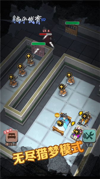 躺平发育3D手机版是一款以真实3D画面打造的策略塔防手游,完美继承《猛鬼宿舍》核心玩法并全面升级!在紧张刺激的对局中,玩家需通过赚取金币购买道具、构筑防线,抵御源源不断的僵尸入侵。完成任务不仅能获得丰厚奖励,还能收集角色碎片,解锁更多强力角色。游戏更独家加入梦魇模式”与上帝之手模式”,带来前所未有的策略深度与操作自由度,让你在沉浸式恐怖氛围中体验智勇双全的塔防快感!
