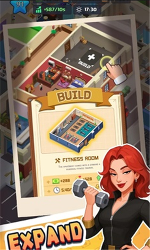只需轻点屏幕即可升级房间设施,但真正的挑战在于长远的建筑布局与资源分配。通过智能管理系统自动收取租金,合理规划资金用于扩建楼层、优化动线,同时密切关注租户满意度曲线,确保收益与口碑同步增长。