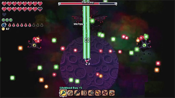 游戏中的回血机制极具挑战性——必须原地站立并长按5秒才能喝完整瓶药水。这一设计大幅提升了BOSS战与群怪遭遇战的难度,迫使玩家精准把握安全窗口,依靠冲刺与走位规避伤害。值得庆幸的是,开发团队巧妙平衡了节奏:每当血瓶耗尽,地图中常会适时出现血池,助你继续前行。