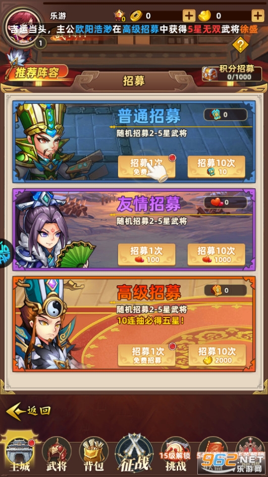 6、玩家用金币购买三国人物。三国中的两个角色可以整合到更高级别的任务中。