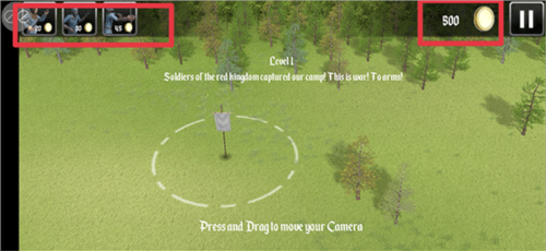 2. 初始金币有限,请合理点击左上角士兵头像,部署首批作战单位。