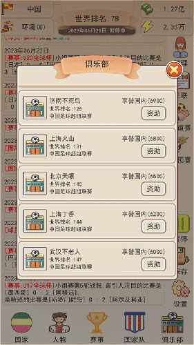 首次进入游戏后,请选择一个空白存档开始你的足协主席生涯。初期建议优先点击【国家】界面,投资提升足球环境”以解锁更高属性上限;随后通过【人物】菜单培养球员,每次培养随机提升一项属性。别忘了利用【签约】功能与品牌合作,这不仅是重要收入来源,还能稳步提升声望值。当等级达标后,即可报名参加各类联赛,开启冠军征程。