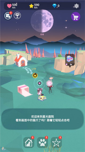 1、看到画面中的猫爪提示了吗?跟随指引轻轻点击,开启你的星光之旅。
