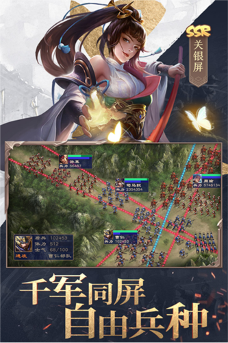 五大兵种相克,技能组合千变万化:枪、骑、弓、谋、车五大兵种相互克制,搭配200余种技能效果(如眩晕、沉默、混乱),策略搭配决定胜负,操作与智慧缺一不可。