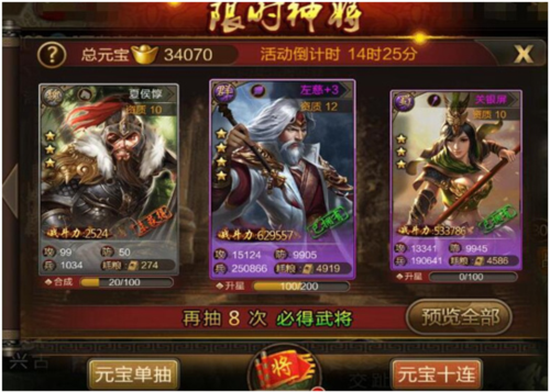 多元武将获取途径:酒馆招募、客栈拜访、宝库寻宝,更有假日商店、西域商店、演武商店等丰富渠道,助你轻松集齐心仪武将。