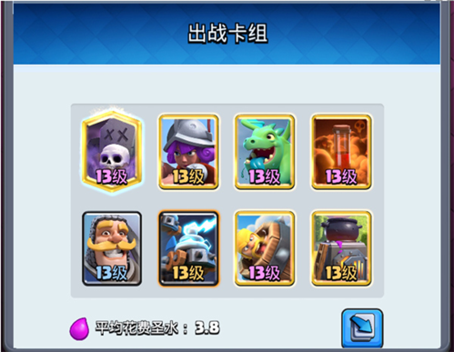 推荐卡组:骷髅军团 + 哥布林飞桶 + 飞龙宝宝 + 野蛮人滚桶 + 哥布林小屋 + 火球 + 骷髅墓碑 + 猎人(平均3.5费)。该组合攻防兼备、易获取、节奏快,尤其克制高费卡组。骷髅军团可有效反制皮卡、巨人等大型单位;哥布林飞桶机动性强,适合突袭拆塔;飞龙宝宝兼顾空地输出;哥布林小屋与骷髅墓碑提供持续人海压力;火球用于清场与补刀;猎人则专注近距爆发与防空。整体容错率高,适合新手与资源有限玩家。