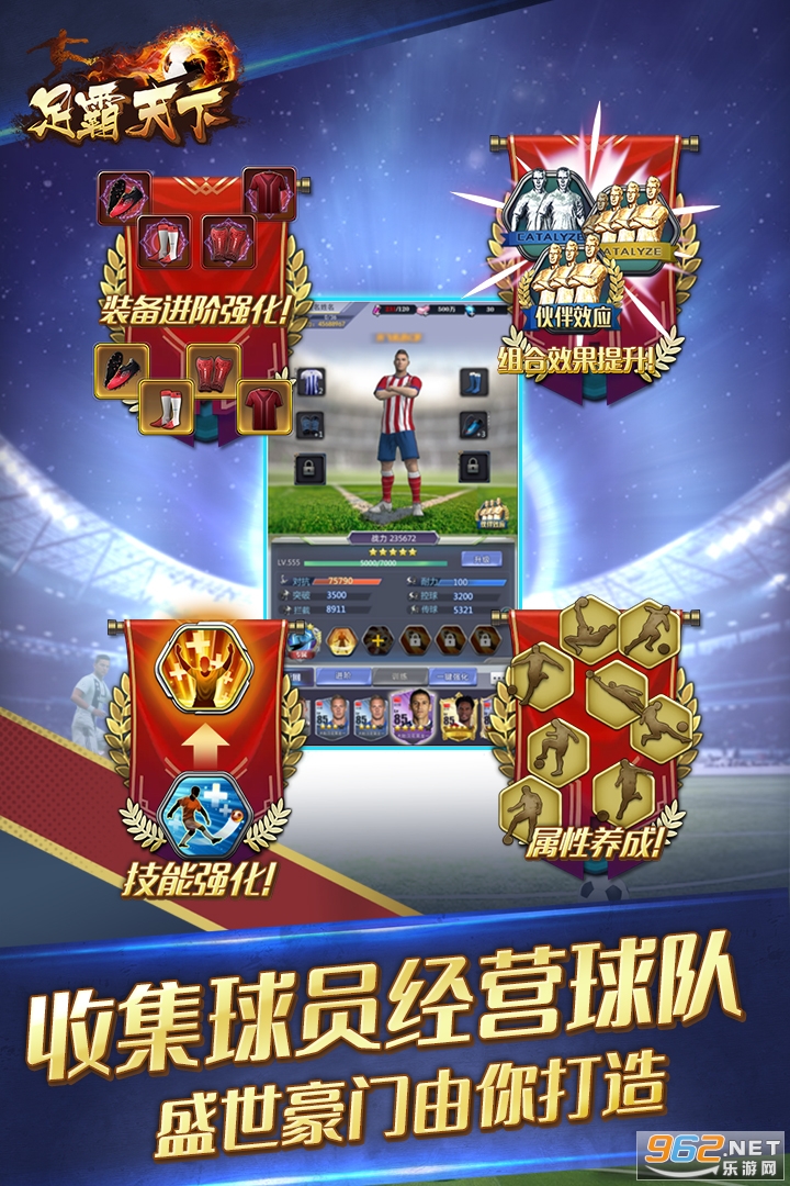 《足霸天下》游戏软件是一款卡牌(3D竖版)类足球手游。玩家在游戏中通过知名球星收集和培养,球队经营和管理,多变战术和实时选择决定胜负。球队战术和球员技能的赛前安排和临场操作,公会系统及赛制系统的设定,让玩家大幅度感受和领略足球魅力的同时,建立良好的交流互动,形成球迷性质的社交平台。