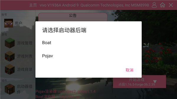 3. 点击【开始游戏】,在启动器后端中任选其一即可