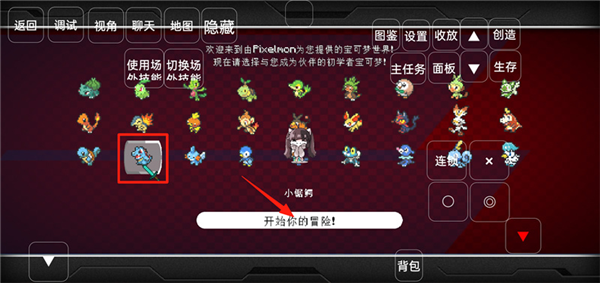 7. 最后,从初始宝可梦中选择一位伙伴,正式踏上你的方块宝可梦之旅!