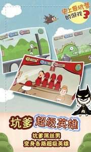如果你有一颗不甘寂寞的"乐观坑货心",如果你想看朋友的抓狂的出糗神情,《史上最坑爹的游戏3》是不可错过的"整蛊大全"!汇聚八方的脑洞,解谜逻辑让你猝不及防!在这个虚拟的世界中,史小坑舍身成为你的发泄对象 :"你虐小坑千百遍,小坑待你如初恋!"小坑早已练就金刚不坏之身!