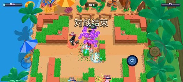 单人或双人吃鸡模式,10名玩家同场竞技,通过开箱或击杀获取能量提升属性,同时躲避不断收缩的毒雾(每秒1000伤害)。地图视野仅2格,草丛密布,需观察脚印判断敌人位置。特殊道具如愈伤蘑菇(每秒回血1000)、流星火雨(砸向人群)等随机刷新,增加战术变数。开局优先抢占中心宝箱,可快速建立优势。