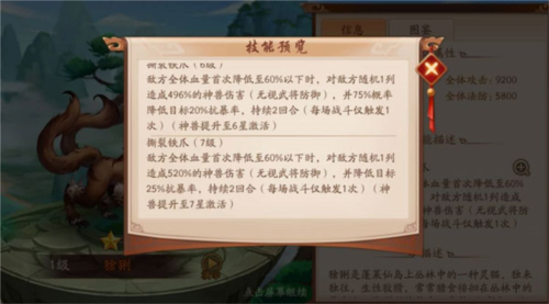 橙神兽·猞猁:残血收割者,敌方血量低于60%时触发列伤,七星可达520%伤害并削弱抗暴,适合中前期速推与试炼。