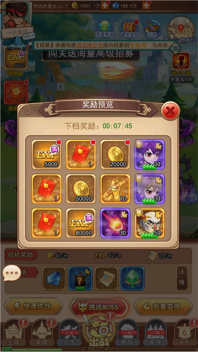 角色经验主要来源于主线推图,包括挑战BOSS、快速作战与挂机奖励。通关关卡越多,每分钟挂机收益越高,前期快速推进主线是提升战力的关键。