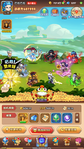 挂机奖励:战斗界面点击小青蛙图标即可领取。通关关卡越多,每分钟收益越高,是稳定经验来源。