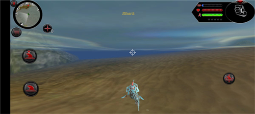 3、在陆地上玩家可以使用机甲形态,这样可以在陆地上肆意奔跑,对敌人进行攻击;当在水里时玩家可以选择用鲨鱼形态,在水里可以行进的更加流畅。