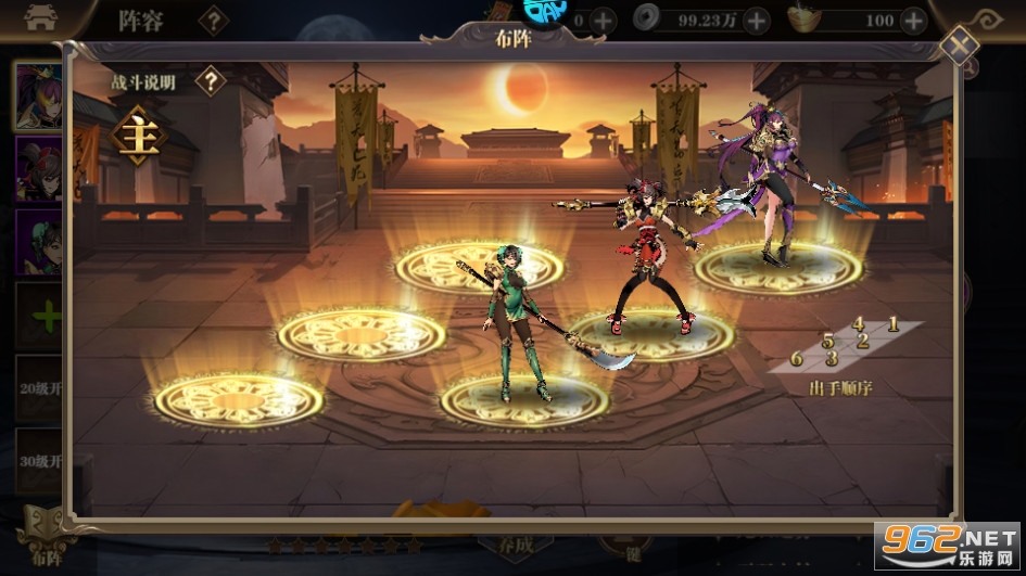 一款3D半回合制玄幻三国新游。 采用最新FLASH3D技术,引入全屏战斗、打击回馈等特殊效果,通过华丽的场景、人物以及动画剧情设计等,带玩家进入一个立体逼真、细致入微的三国乱世。 战斗无疑是最大的特色,真正实现策略性、随机性、观赏性!