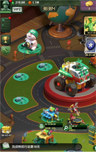 游戏彻底打破传统四兵种”限制,引入高度自由的兵种养成体系。你可以根据战局需求,自由搭配技能与装备,培养出独一无二的战斗单位。无论是重型坦克集群冲锋,还是狙击手+火焰兵的精准突袭,每一种组合都考验你的战术思维。升级指挥部、科技研究所、空军营地等建筑,逐步构建属于你的玩具帝国。