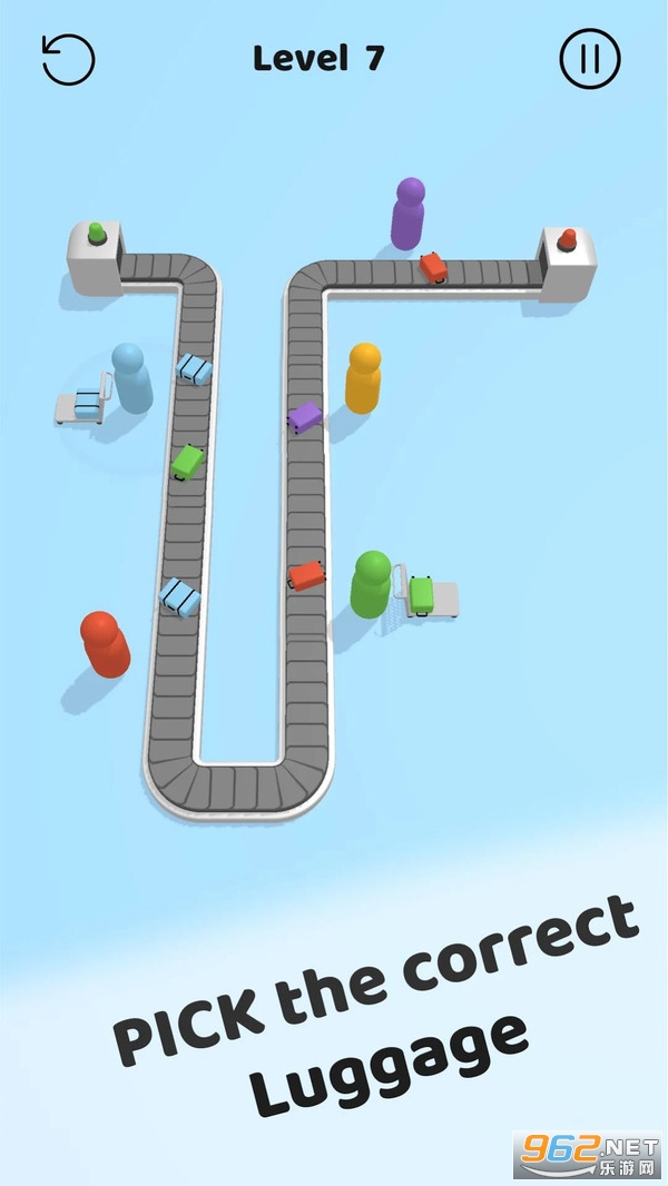 画风十分清新的休闲游戏,模拟坐飞机过安检检查行李箱的袖珍版,你可以在游戏中滑动手指移动那些不同的行李箱,你的任务就是可以将全部的行李箱取出来,不过需要保证一一对应,让每个乘客都领取到自己的行李箱。