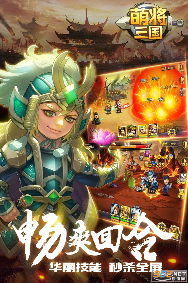 游戏目前有近百位三国武将,每位武将都有独特的普攻、主动技能、自动技能,技能特效华丽炫酷,光影效果十足。