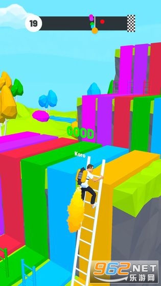 《Ladder.io游戏》是voodoo厂商推出的一款画面清新的敏捷跑酷类休闲手游,游戏中玩家将控制一个就是在各种赛道上冒险,前方会出现众多高耸的台阶,玩家需要利用梯子快速的爬上平台,可以积累喷气背包的颜料,让你飞的更高,更快的到达终点。
