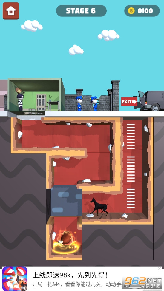 游戏玩起来还挺有意思的,每一关你都需要想出正确的过关方式,丰富的关卡等你来挑战,想办法在警察不注意的情况下逃脱成功咯!
