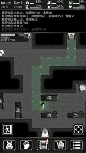 日常补充方面,湿毛巾用于洗澡,干毛巾可在淋雨后吸水;公园可设为安全屋周边刷点,定期收取资源;医院是食物与药品的稳定来源。心情可通过粗烟恢复,健康则依赖抗生素。商人交易策略也需掌握:米姐偏好食物,加尔适合兑换步枪零件,邹胖子和撒旦接受血液交易(后者更划算),而肯特则适合处理杂物。