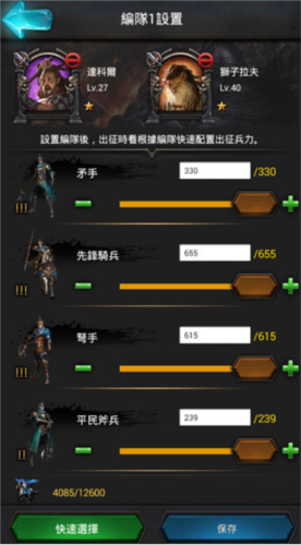 通过拖动分配条或使用快速选择”功能,可灵活调整出征阵容。随着英雄与科技提升,逐步优化兵种结构,方能在多变战局中立于不败之地。