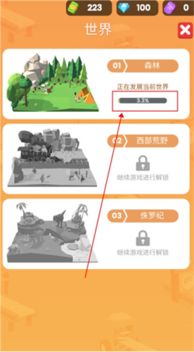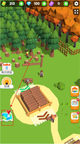 想要探索更广阔的森林?只需点击左下角地图图标,查看当前区域进度。当完成当前地图100%的开发任务后,即可自动解锁下一张全新地图,迎接更多资源与挑战,让你的木材帝国不断向外延伸。