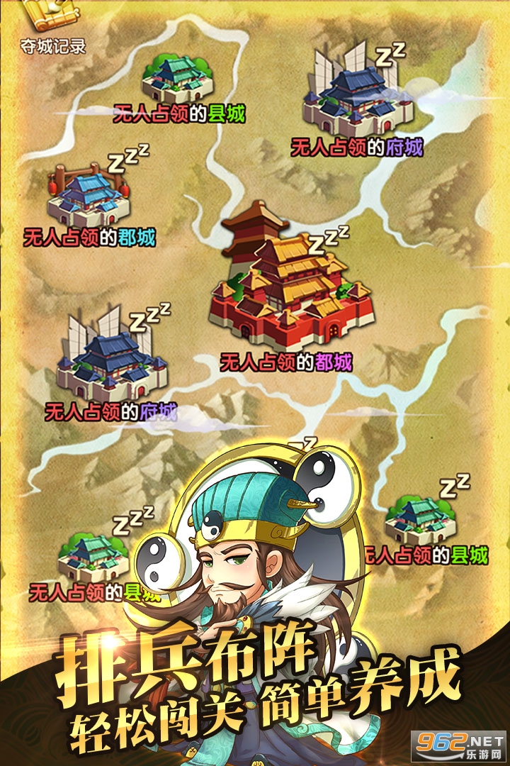 非一般的经营策略手游,加入了许多卡牌类游戏的推图和卡牌收集的游戏元素,300余三国将领静候招募,升级、强化、组合卡牌完美融合,攻防两条搭配路线,简约中体现谋略,拼武将更拼头脑,没有无敌的组合,只有更强的阵容
