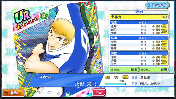 游戏虽为11人制足球,但实战中起决定性作用的往往是四个关键位置:门将(GK)、防守型中场(DMF)、进攻型中场(OMF)与前锋(FW)。优先集中资源培养这四类角色,能事半功倍。其中,优质门将可大幅降低失分,性价比远高于堆砌多名后卫;DMF负责拦截与组织,OMF专注输送,FW则承担终结任务。当前版本获取难度排序为:门将 > 防守中场 > 进攻中场 ≈ 前锋。建议新手初期可使用活动SSR如日向小次郎(带吹飞效果)作为过渡前锋,待获得核心角色后再将其转化为养成材料。
