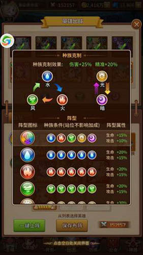 战斗系统:采用竖屏回合制自动战斗模式。玩家上阵5名英雄,出手顺序由速度决定。技能无消耗但有冷却回合,等级越高效果越强。部分状态间存在联动加成,合理搭配可最大化输出效率。全程自动战斗,兼顾策略性与便捷性。