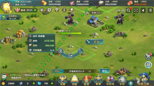 一、高效收集升级材料资源主要通过三种方式获取:征战地块(击败守军后占领)、自主产出(占领更多地块提升产量)以及掠夺其他玩家。同时,务必及时升级仓库容量,避免资源溢出浪费。