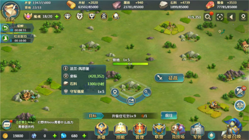科学拓展资源地2级地守军仅600,易攻且产量远超1级地,是初期首选;3级地守军1800,需提升英雄等级或技能方可攻克。注意:距离越远,守军兵力越高,务必确保出征兵力充足。